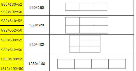 The screen size of the display can be customized according to the following shapes and sizes. At present, the display screen of our company uses P10 display module, so the size has certain rules, as follows: